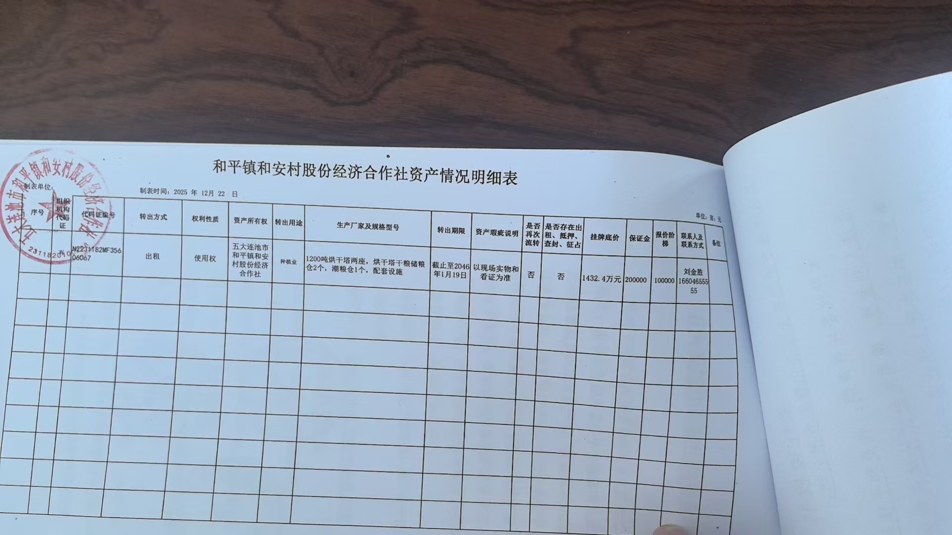 一、竞价租赁内容 1200吨烘干塔两座,烘干塔干粮储粮仓2个,潮粮仓1个,配套设施,其政府采购价为14,323,622.77元。 二、竞价租赁期限及底价 和安村股份经济合作社1200吨烘干塔两座,烘干塔干粮储粮仓2个,潮粮仓1个,配套设施在农村产权交易平台出租,租用期限20年。原则20年租赁期内收回采购成本。自2026年1月20日---2046年1月19日,每年按照设备总价的5%计算租金,即每年柒拾壹万陆仟贰佰元整(71.62万元/年);20年累计上交租金1432.4万元。 有意竞标者在竞标前需向产权交易平台缴纳保证金20万元,以银行存款凭证为准。起拍价格为1432.4万元,每次竞拍阶梯价最低为10万元,竞价时租金高者中标。再签订正式租赁合同。如流拍另行处置,对中标不交清补齐中标价与底价的差额者,其保证金作为失信惩罚金不再返还该竞标者。 三、竞价租赁人资格及条件 1.竞标者需提供等值于一年租金价格的抵押物在和安村抵押,直至承包期结束。竞标者需在开拍前到村委会进行审核,审核合格后方可参与竞拍。 2.竞标成功者需在当年8月30日前一次性交齐租金并同和平镇和安村股份经济合作社签订租赁合同,明确双方权益责任。以后每年租金需在当年的8月30日前一次性交齐,如在约定缴款期限内不缴纳租金,和平镇和安村股份经济合作社有权终止租赁,承租方需承担相应的法律责任。 3.烘干塔建设项目发包收益,要严格按照五大连池市乡村振兴服务中心要求使用,率先保障脱贫户的持续稳定增收。 4.产权交易平台所产生的一切费用由承租方承担。 5.在生产经营中所产生的维护费、使用费、电费等一切费用由承租方承担。 6.由于烘干塔建设项目逐年会折旧老化从而增加维修成本,所以为了防止承租方中途毁约,毁约需要向村里支付21万元损失费,违约金不足部分按照市场价进行赔偿且将设备恢复到正常使用状态,为新承租方提供需要的便利条件且无条件配合新承租方的经营与使用。