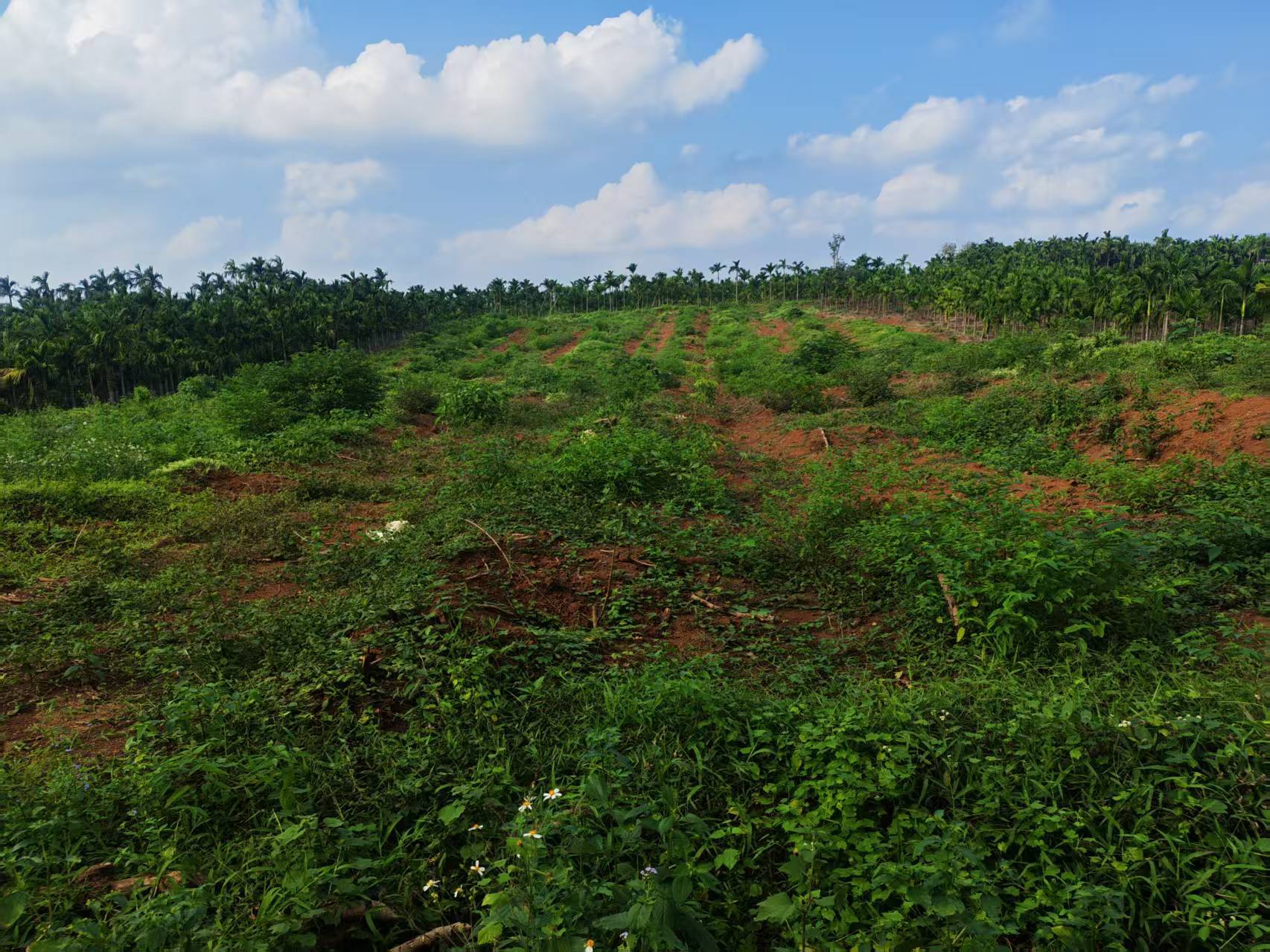 1、该出租地块于2025年已完成更新定植橡胶66.1亩,定植橡胶株行距类型为7*2.8M,郁闭度均为0级。地貌类型多为台地或丘地,土壤质地为砖红壤,坡度在5度以下,基础设施条件灌溉水源基本满足,重开沟渠可基本满足排水需要;临路状况为临近乡道、水泥硬化道路;通电便捷程度为2公里内有供电设施。依据《海胶集团国有农用地租金指导价成果报告》中评分标准,经实地打分,评定该宗地块为郁闭度0级的一级林下土地。