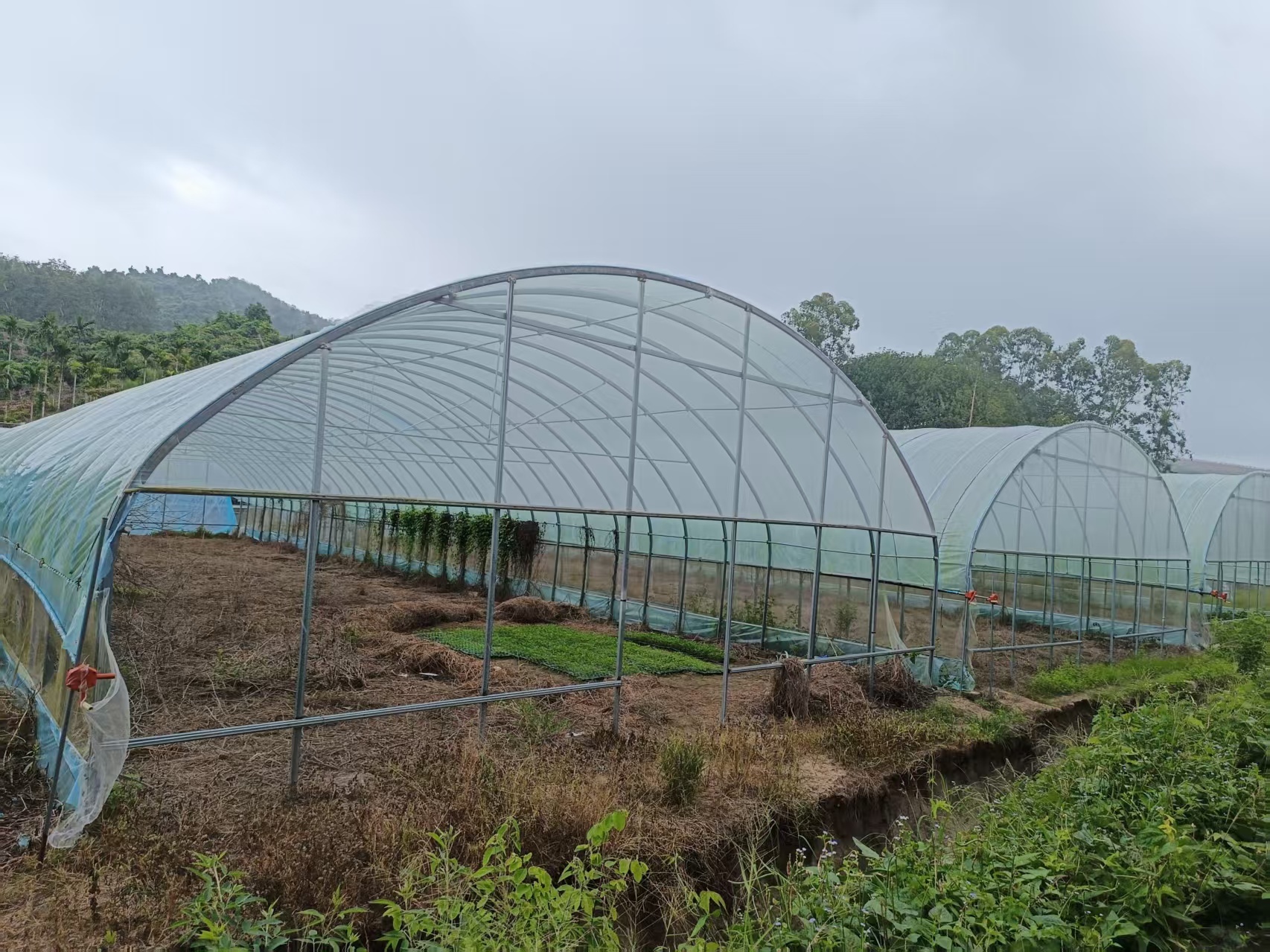 蔬菜大棚建成于2024年初,资产现状为空置尚未投入使用。大棚基础采用C25商砼浇筑,主体结构采用热镀锌椭圆管支撑结构,主钢架采用椭圆管,M梁支撑间距4米,主梁间距1米,主体钢架组装结构,蔬菜大棚外采用12丝po膜覆盖。 |