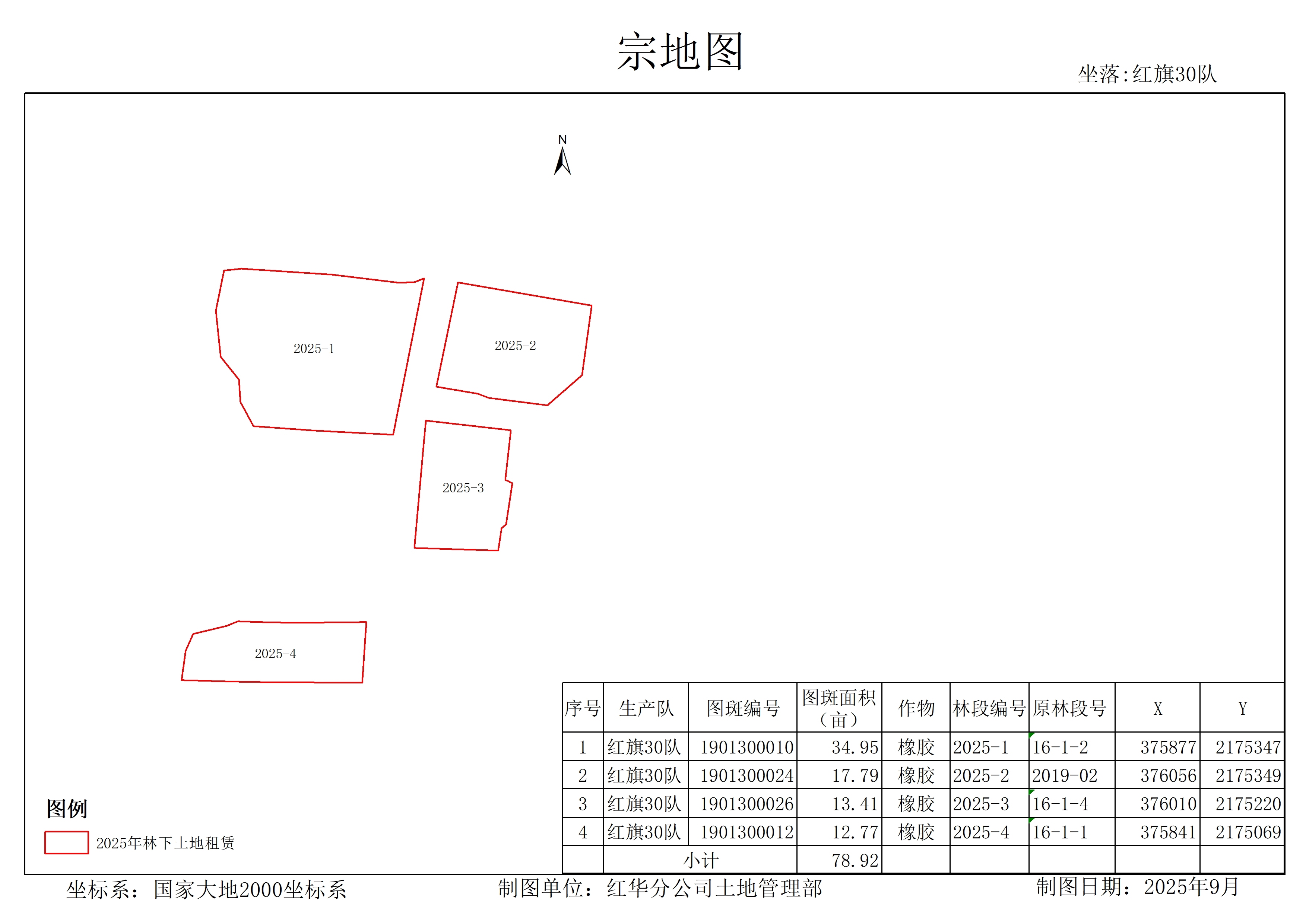 1、该出租地块于2025年已完成更新定植橡胶中小苗78.92亩,行距类型为7*2.7M,地块属于1级林地,郁闭度0级。拟出租地块地貌类型为为平原,土壤质地为壤土,坡度0°~5°的林下土地。该林下土地无灌溉设施,枯水期对其有较大影响。临路状况为乡道,1km内有供电设施,通电便捷。