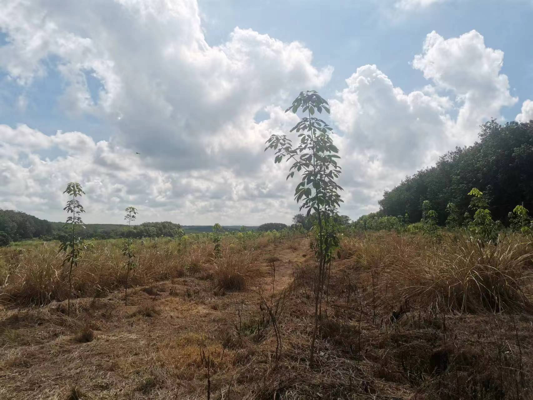 1、该出租地块于2023年8月完成更新定植,定植橡胶株行距类型为7*2.8M ,郁闭度0级的一级林下土地,地貌类型为台地,土壤质地为砂壤土,坡度 5°-15°。