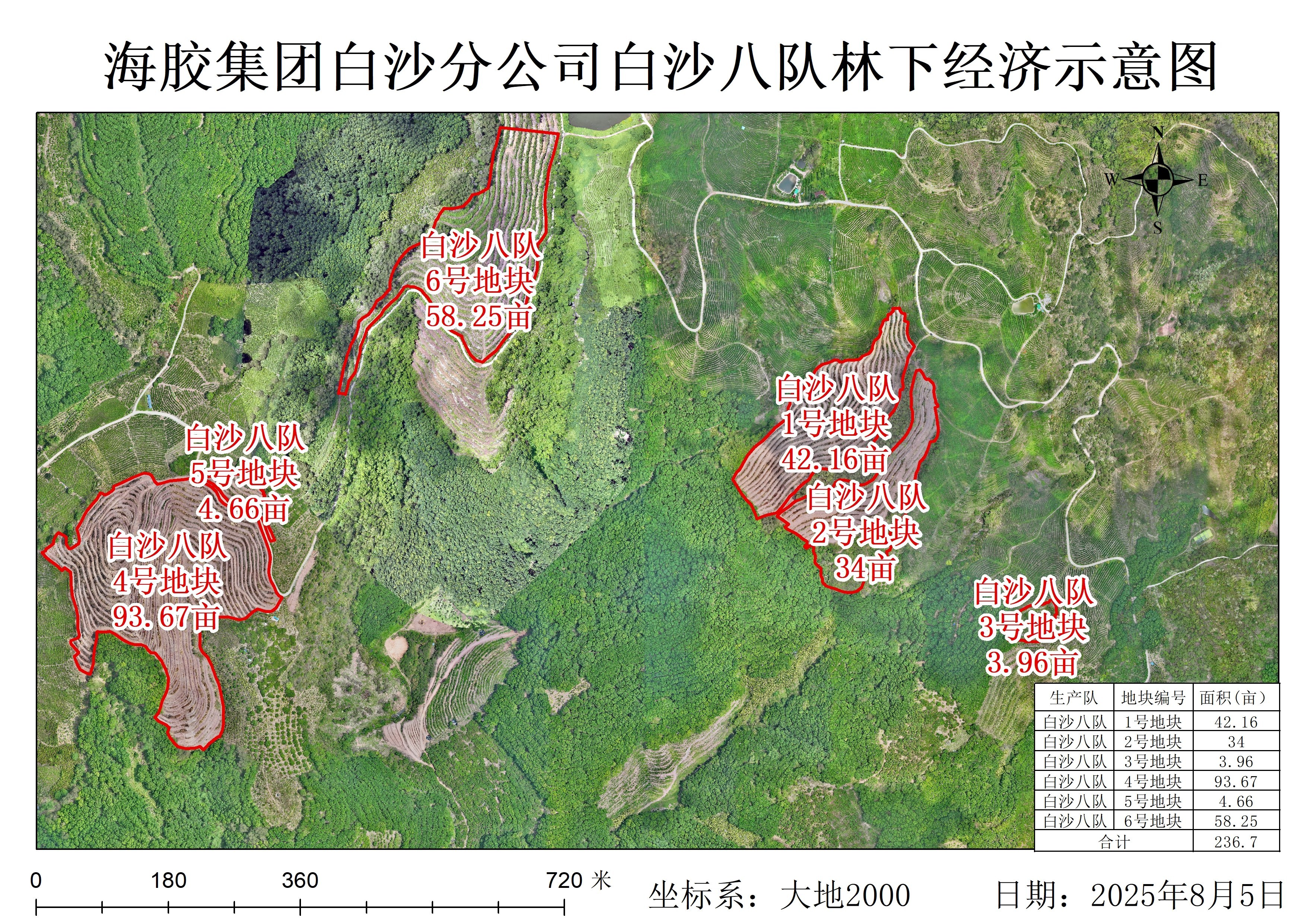 1、该拟出租地块于2024年完成更新定植,定植橡胶株行距类型为 7*2.8,郁闭度0级。地貌类型为三级山地,土壤质地为含风化石较多的红壤,坡度45°左右,基础设施条件(描述灌溉水源、排水条件、临路状况、通电便捷等情况) ,排水条件良好,林间道路良好,没有通电。依据《海胶集团国有农用地租金指导价成果报告》中评分标准,经实地打分,评定此地块为郁闭度0级的3 级林下土地。