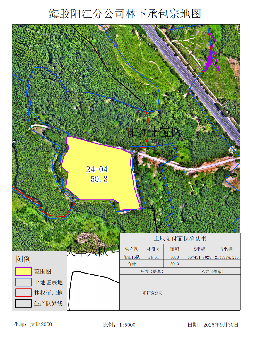 海南天然橡胶产业集团股份有限公司阳江分公司2025年第31次党委会、 海南天然橡胶产业集团股份有限公司阳江分公司2025年第27次总办会、 海南天然橡胶产业集团股份有限公司阳江分公司关于拟出租50.3亩橡胶林下土地的请示、 关于阳江分公司出租50.3亩胶园林下土地事项通过海南天然橡胶产业集团股份有限公司专题会的情况说明