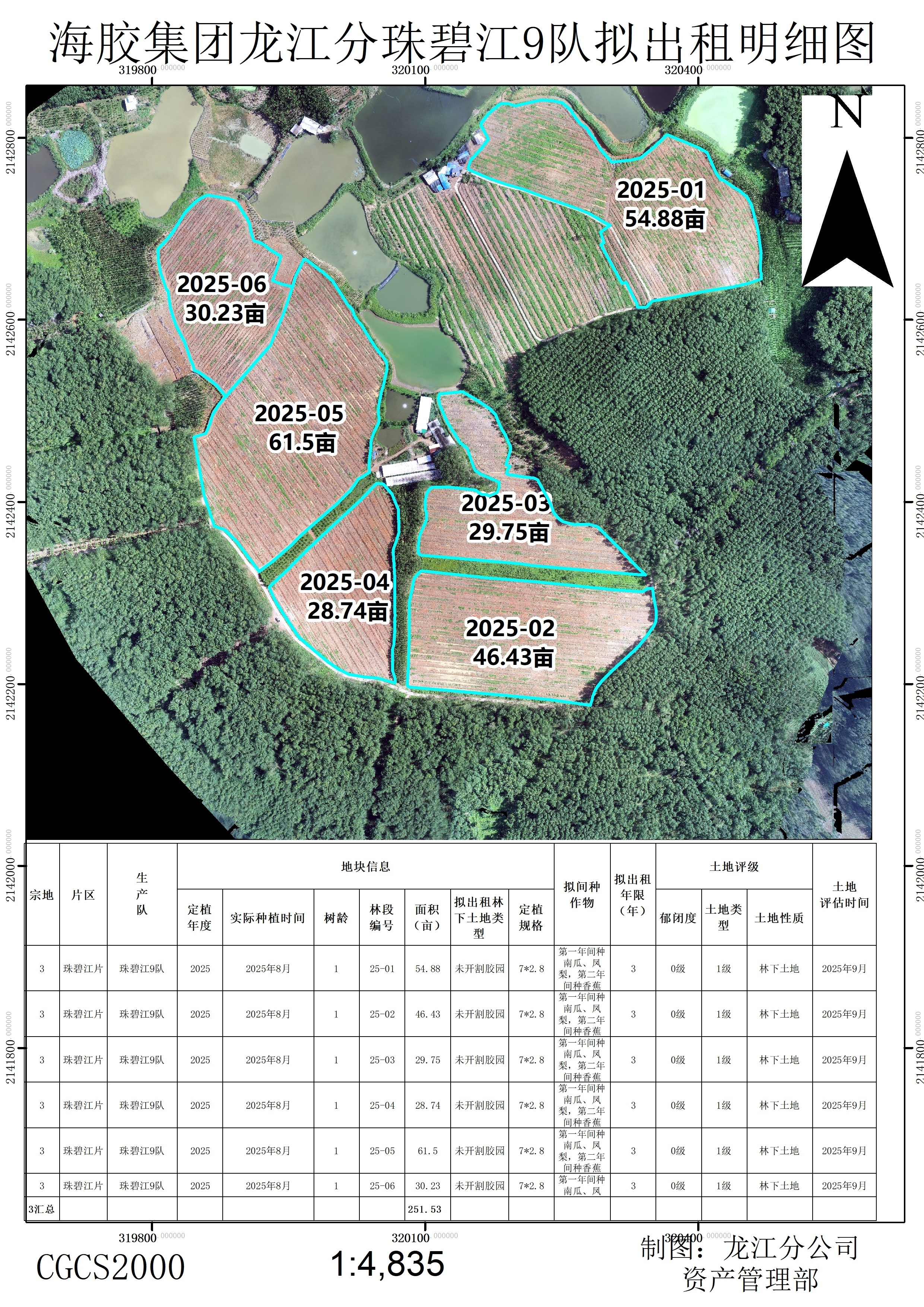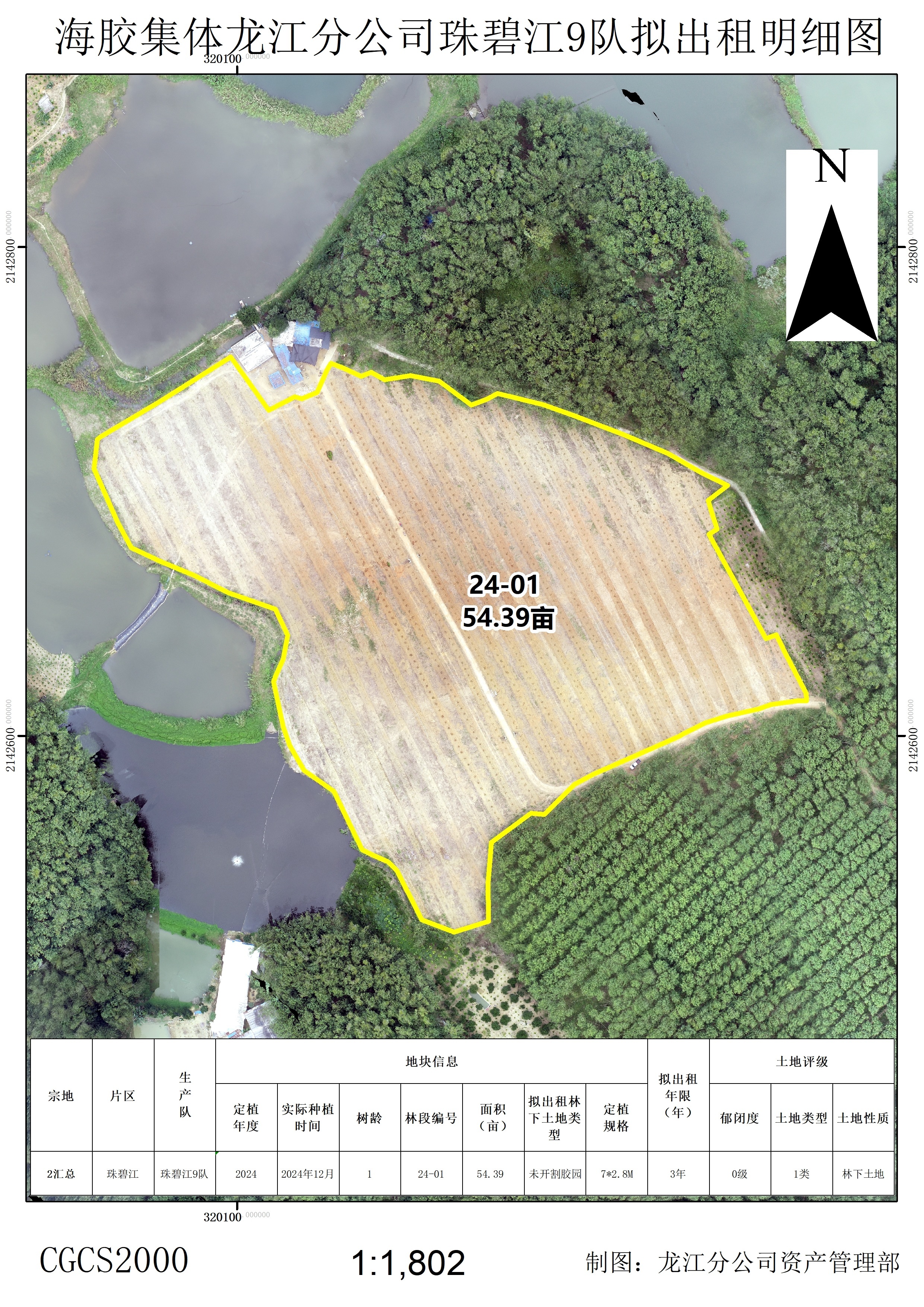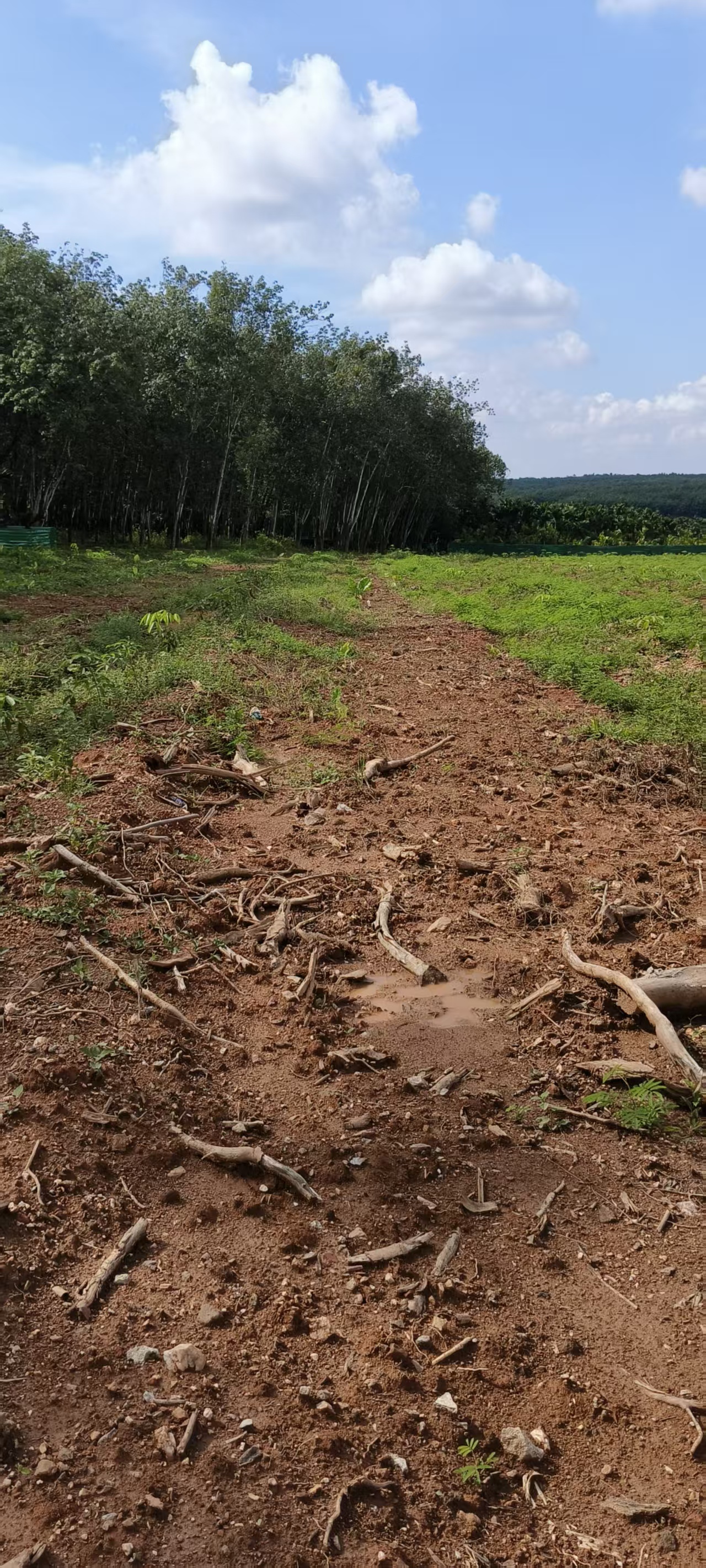 1、该出租地块于2025年种植橡胶中小苗305.92亩,行距类型为7*2.8M,地块属于一级林地。地貌类型多为台地或丘地,土壤质地为砖红壤,坡度在10度以下,基础设施水,电,路,网络全通。浇灌便利,可实现简单机械化种植作业。