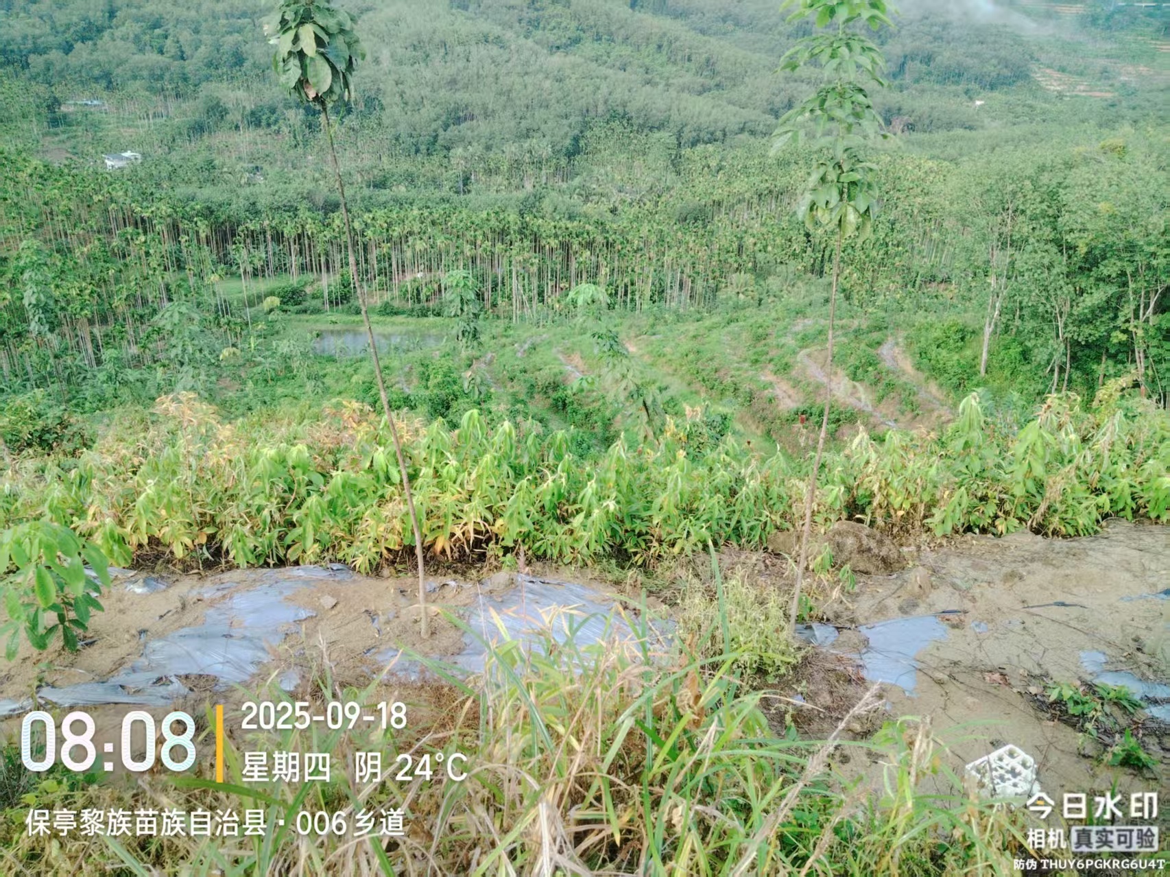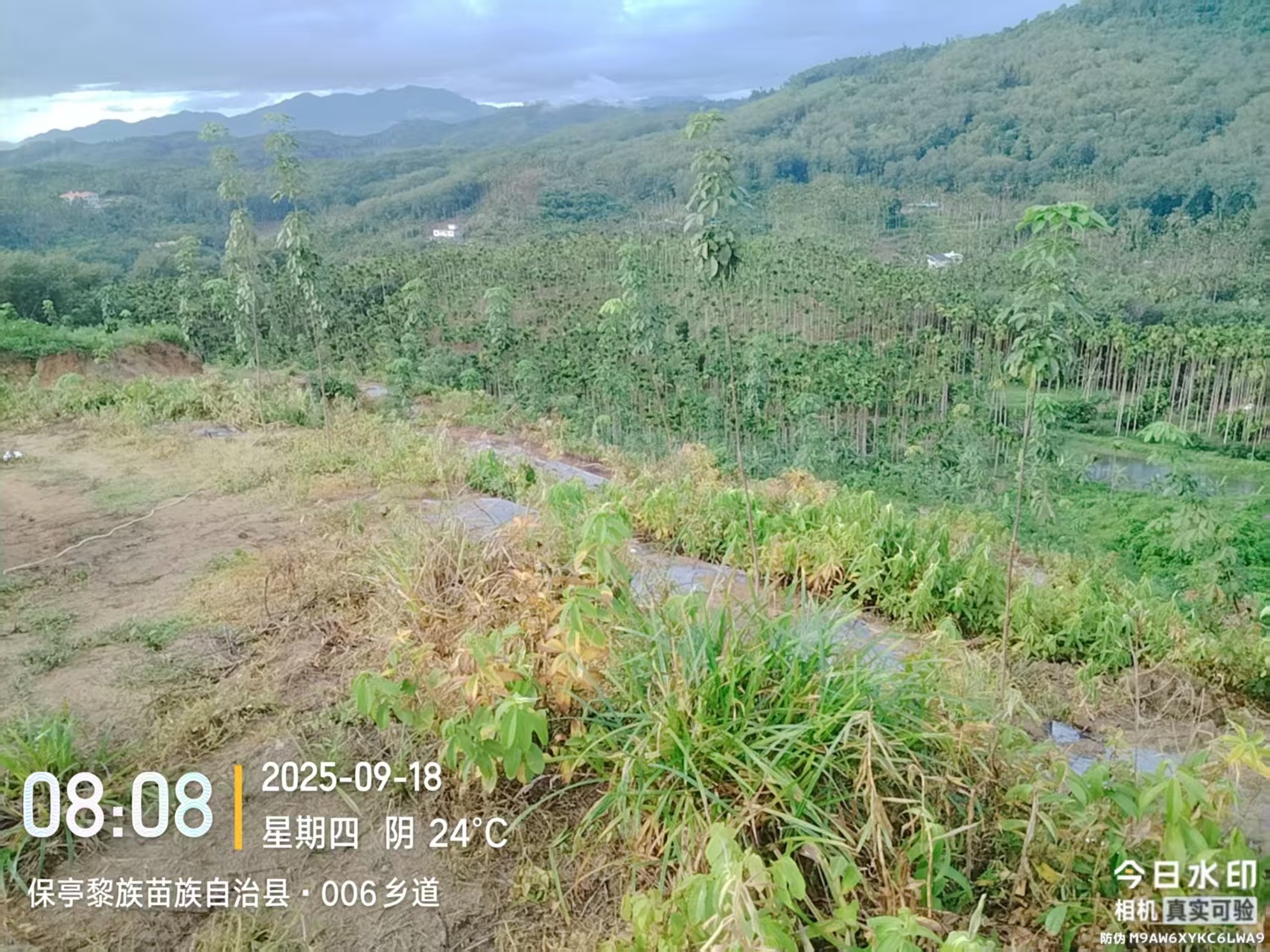 1、该出租地块于2025年已完成更新定植橡胶小苗185.9亩,行距类型为7*3m,地块属于三级林地,郁闭度0级,地貌类型为丘地或山地,土壤质地为砂土,坡度丘地或山地,基础设施条件(良好)。